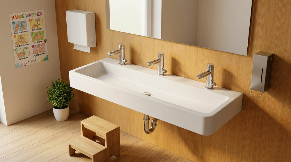 Anbieter:SANELAWandhängende, automatische Edelstahl Waschrinnen mit Infrarot-Steuerung