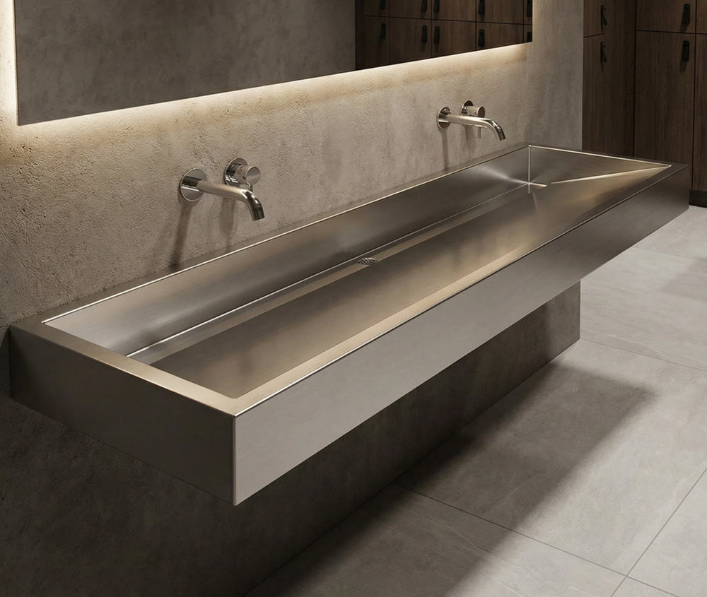 Anbieter:Armatron AGWaschrinne aus Edelstahl matt, wandhängend, 2 Waschplätze