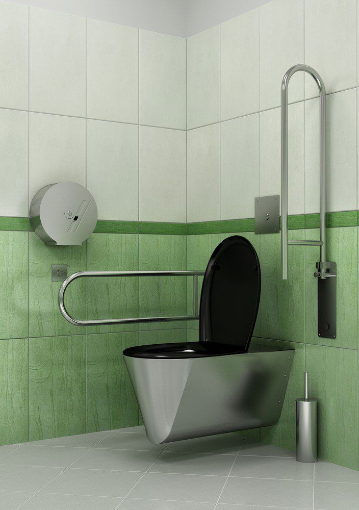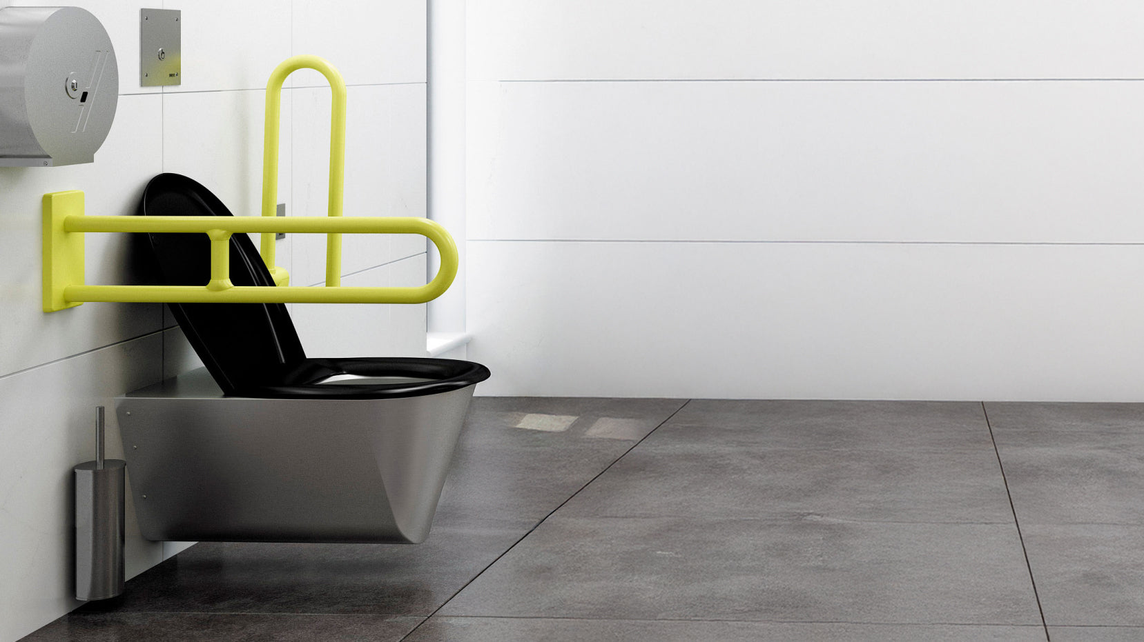 Vendor:SANELAWall-hung stainless steel toilet, long version for PMR