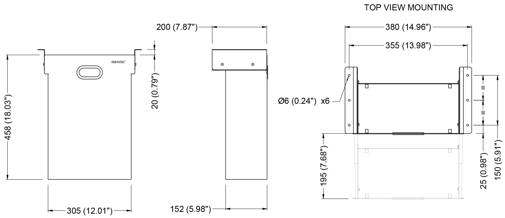 Zwei innere Scharniere zur Fixierung des Plastikbeutels