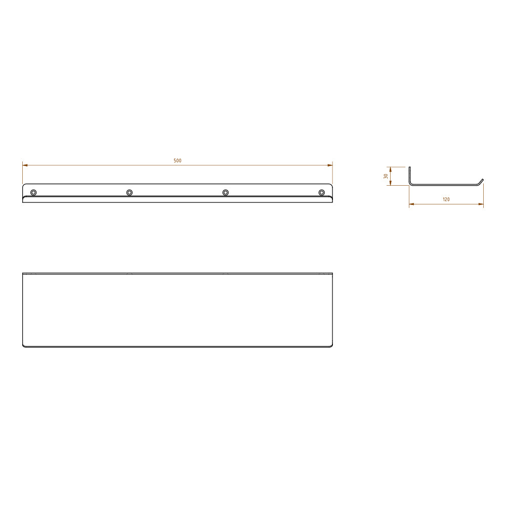 Rear with straight upstand and front with angled upstand as anti-slip protection, mounting holes