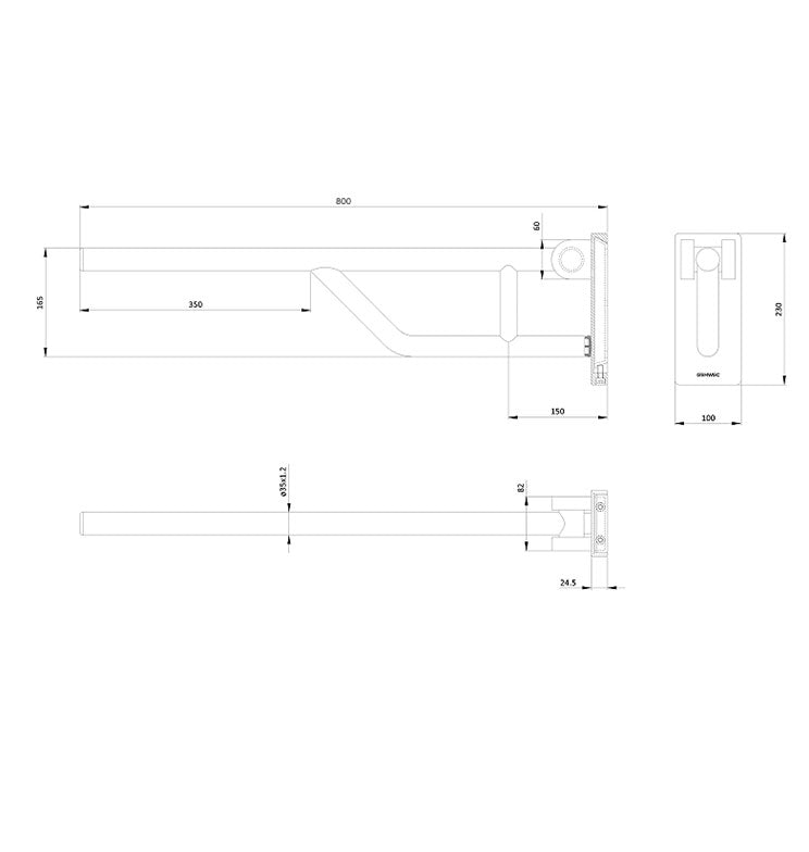 Removable folding bar 800mm stainless steel brushed