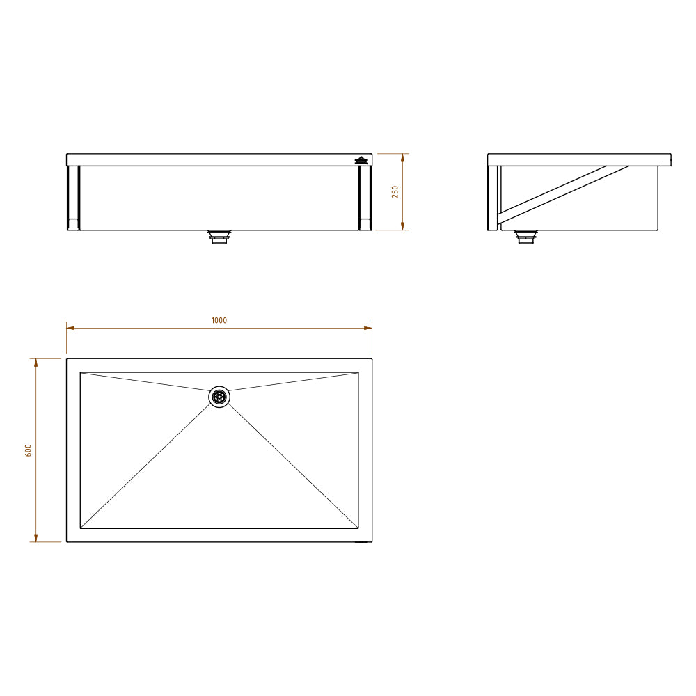 Abm.: 1000 x 250 x 600 mm Becken außen (BxHxT)