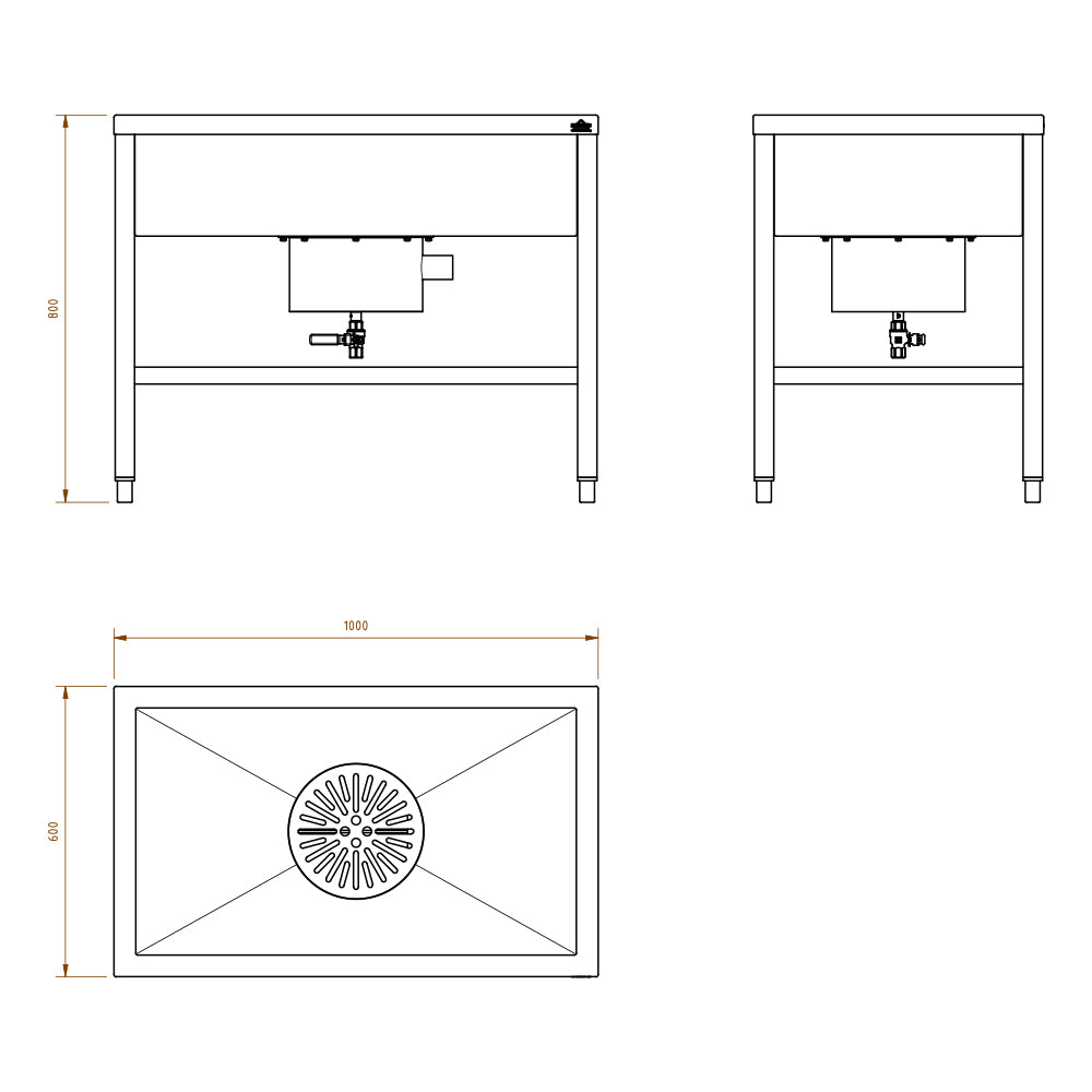 Abm.: 1000 x 250 x 600 mm Becken außen (BxHxT)