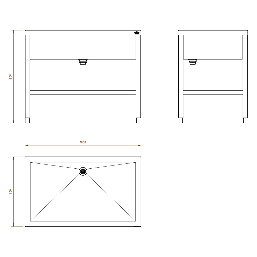 Abm.: 1000 x 250 x 600 mm Becken außen (BxHxT)