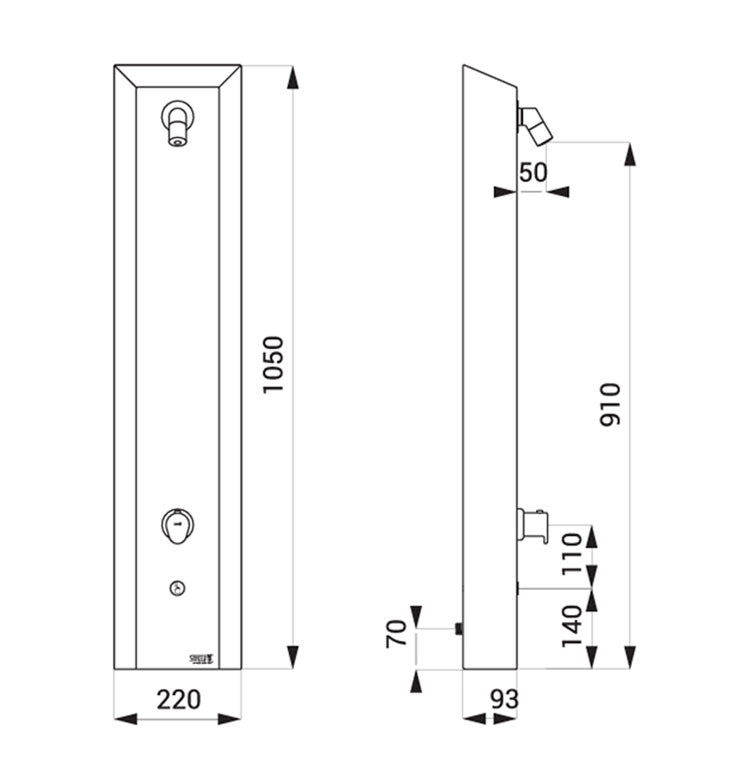 Stainless steel – Piezo – shower panel for hot and cold water with thermostatic mixer,