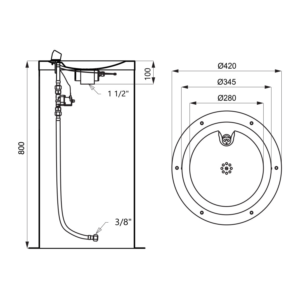 Lieferumfang: Edelstahl Trinkbrunnen mit Elektronik, Trinkauslauf, Elektromagnetventil (1 St.), Eckventil mit Filter und Rückflussverhinderer (1 St.), Anschlußschlauch, Siphon, 4 St. alkalische Batterie AA type 1,5 V/2700 mAh