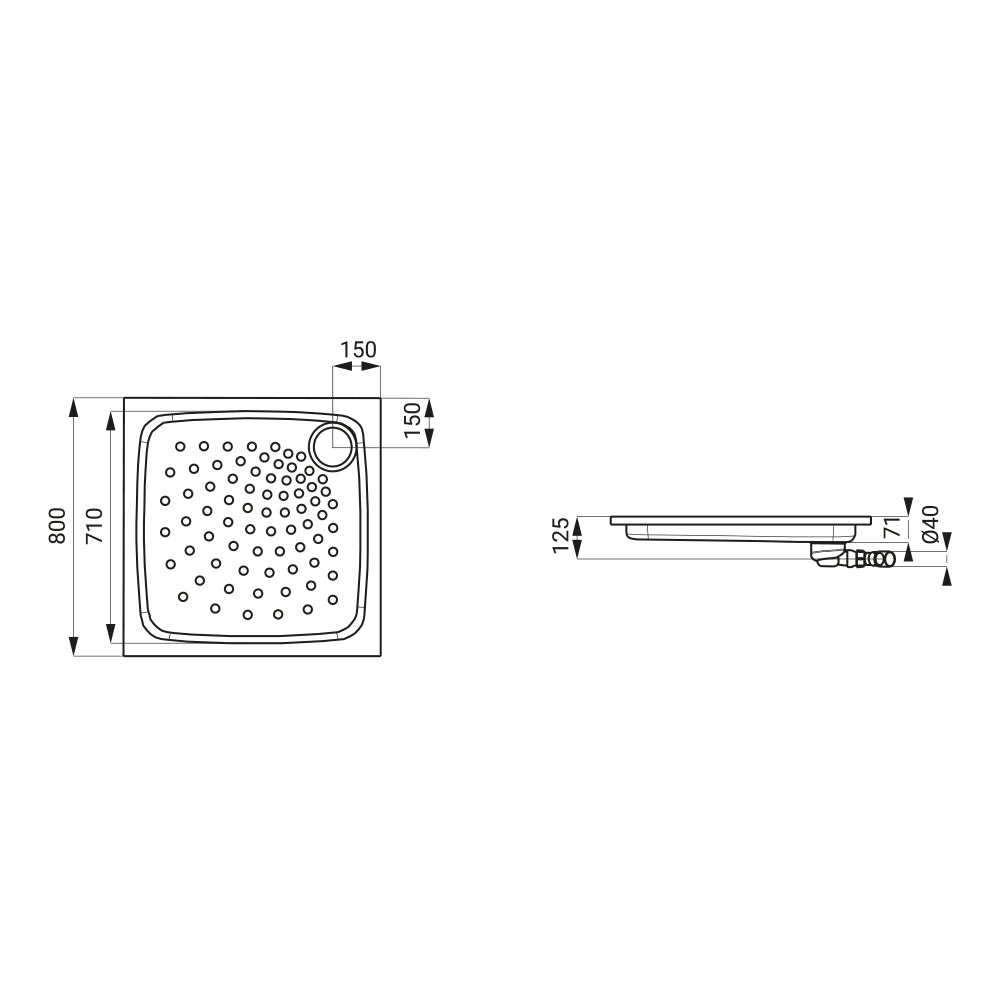 - Abmessungen (L x B x H): 800 x 800 x 71 mm