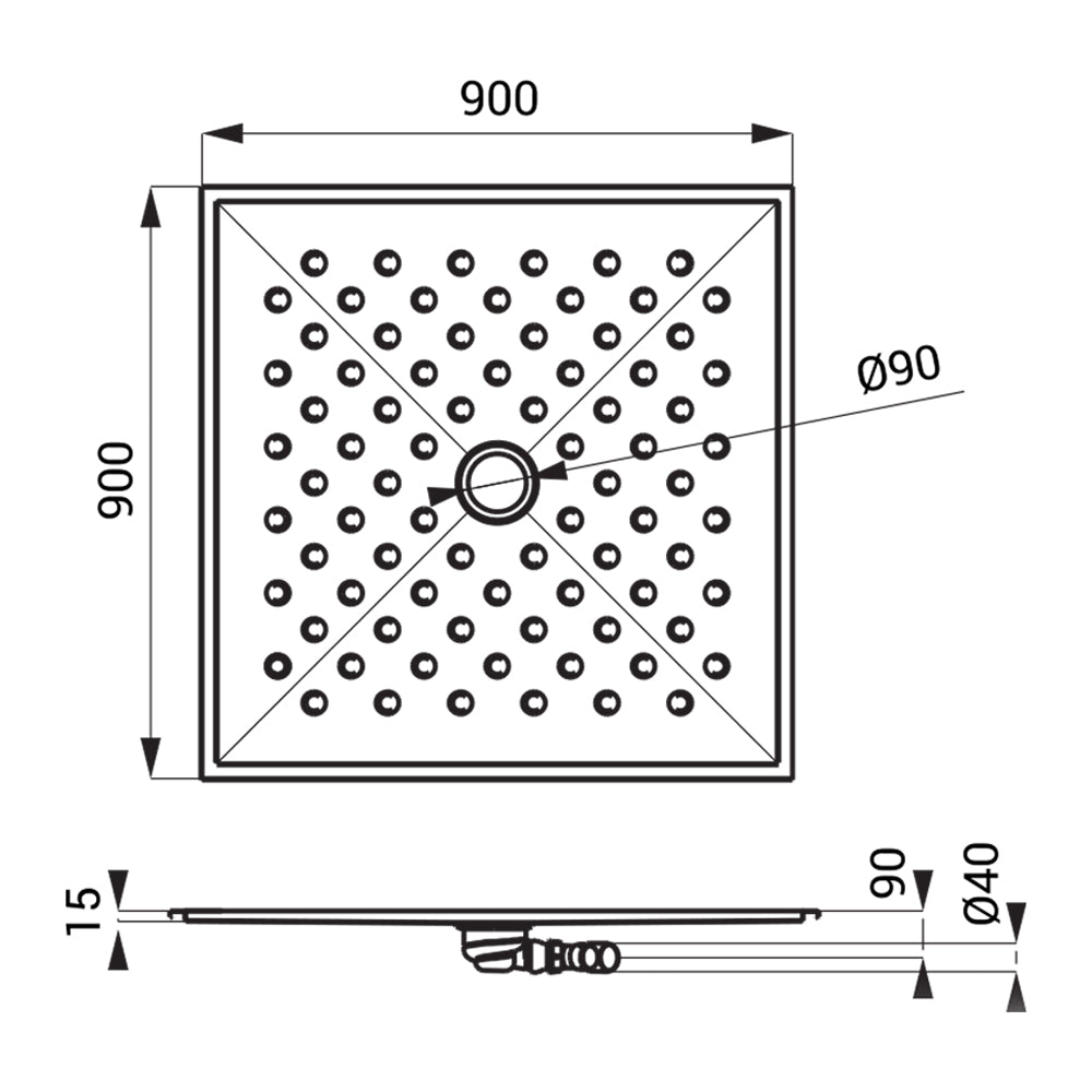 Edelstahlduschwanne 900 x 900 x 15 mm