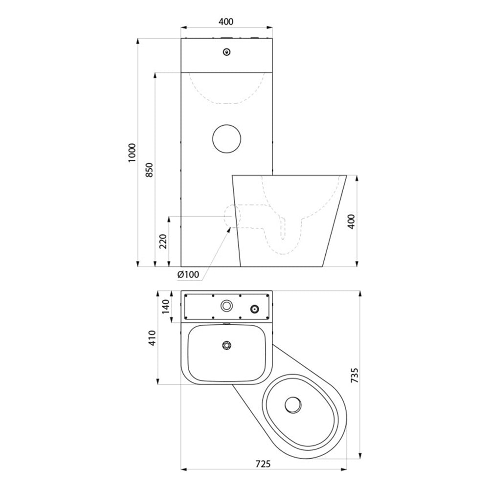 Easy installation: only one drain for toilet and washbasin, water and wastewater connections already included.