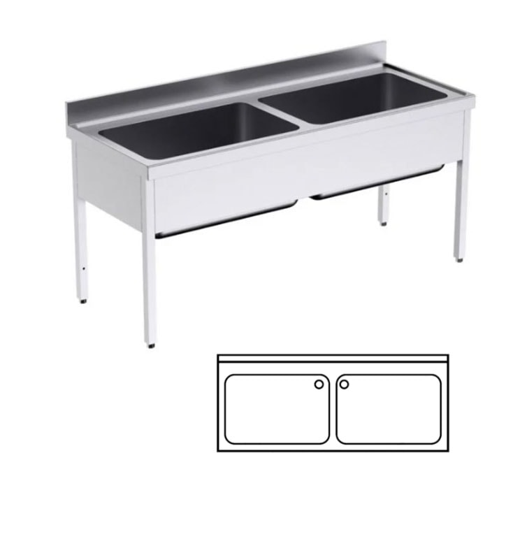 Floor-standing wash trough, 2 places, l. 1250 mm, ASA-SLUN-50EA