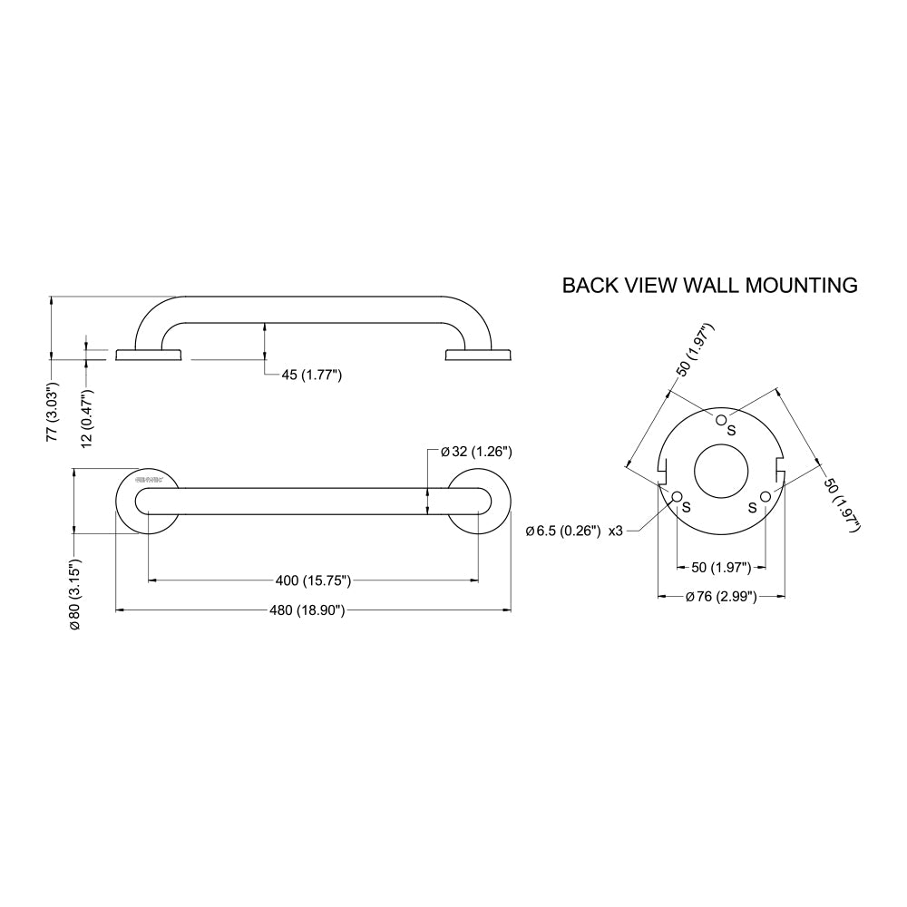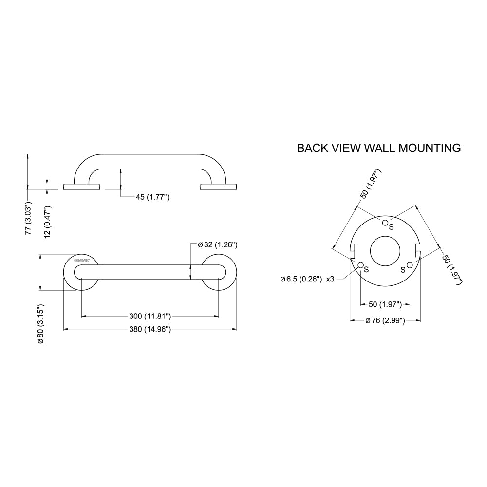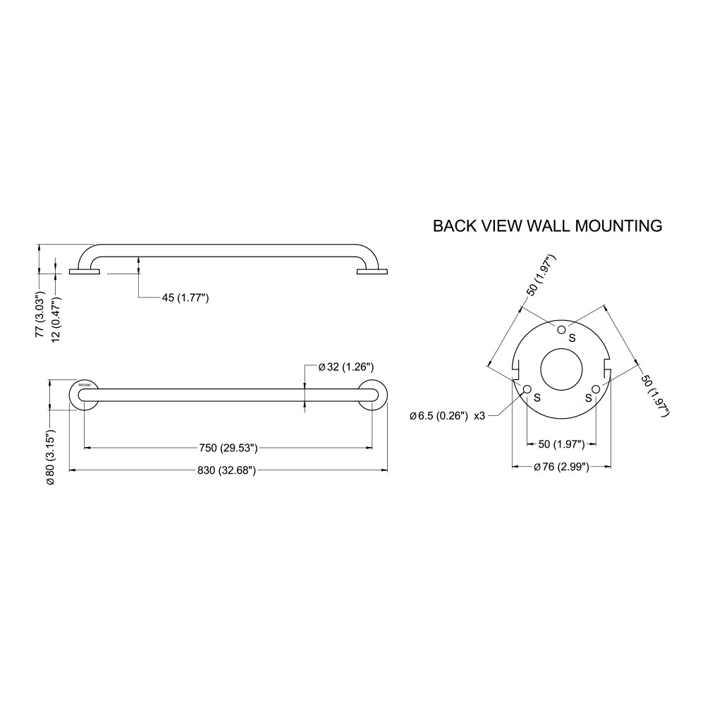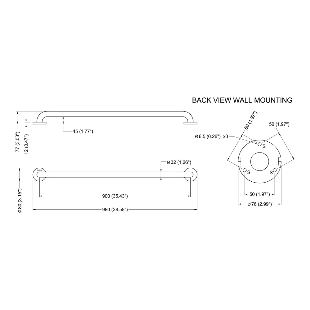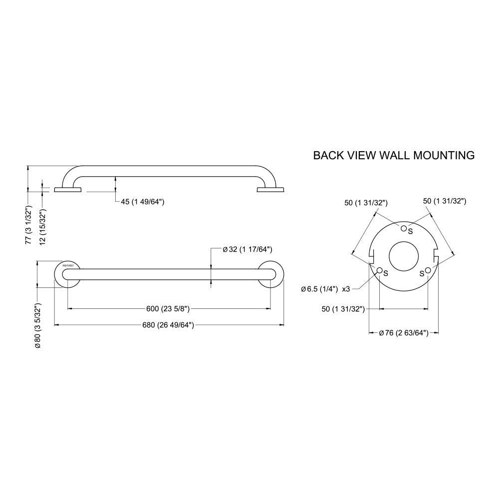 Verdeckte Befestigungen durch Dreiloch-Wandflansch und Rosette aus Edelstahl