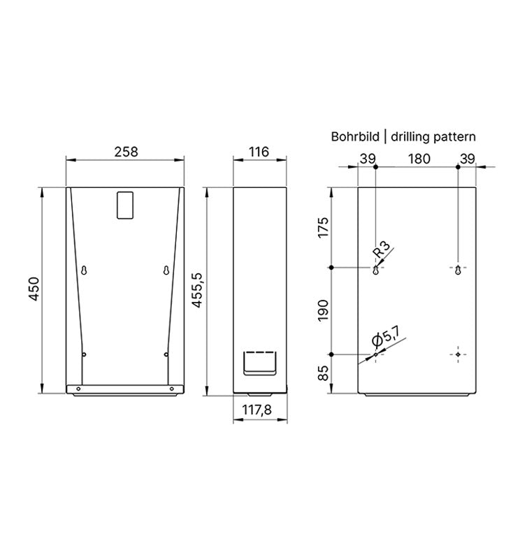 Geeignet für Papierhandtücher mit einer Länge von ca. 215-250 mm und einer gefalteten Breite von ca. 95-120 mm