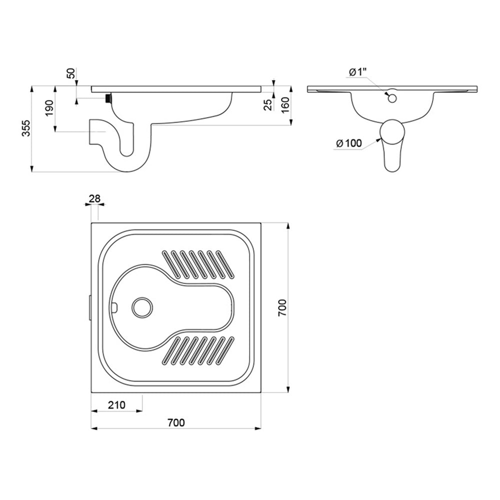 Squat WC SHA 700 1 spreader w. siphon Ø1" 304 st steel satin