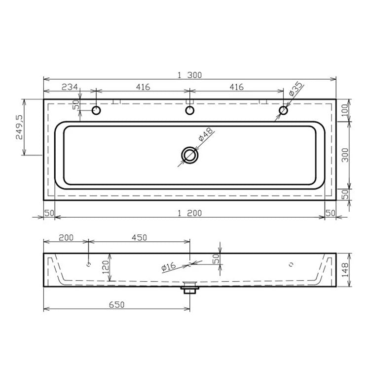 MINERALCAST wall-mounted wash trough for kindergartens, 1300 mm