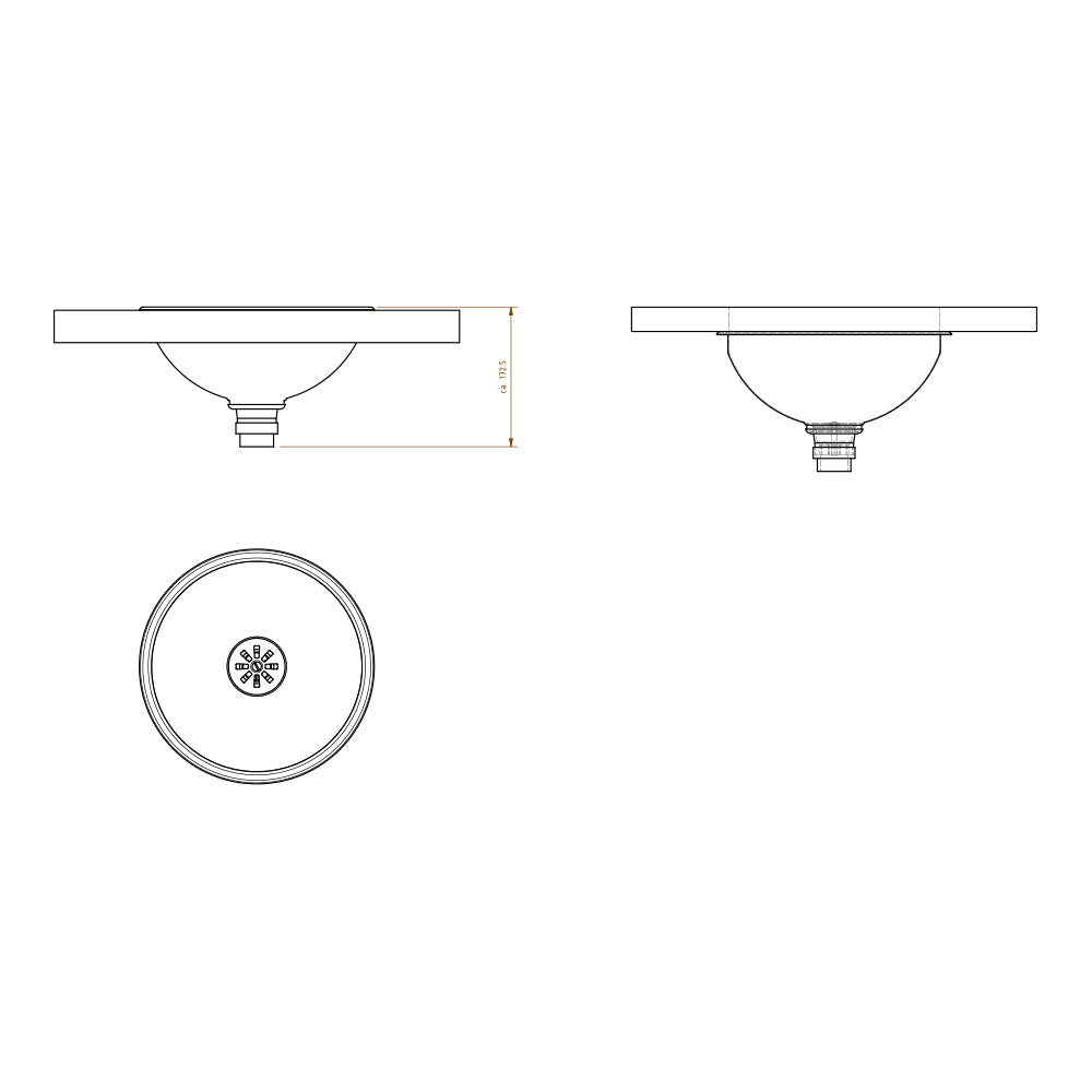 Rundes Becken zum Einbau oberhalb oder unterhalb von Tischplatten