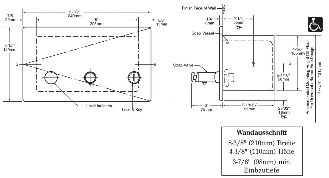 Wandöffnung: 215 mm (B) x 110 mm (H) x 100 mm (T)