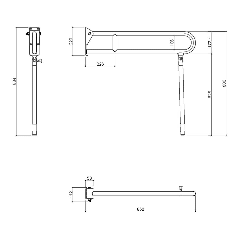 Ausführung mit Fuß, der einklappt: dient als verstärkte Stütze, falls die Wandmontage nicht ausreicht.