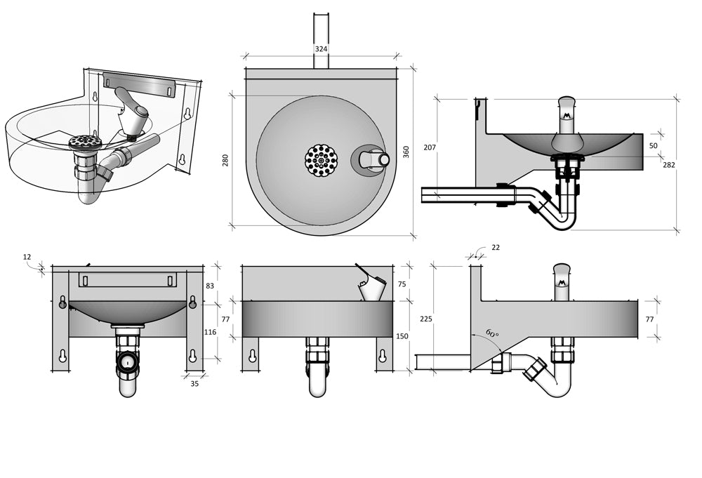 Lieferumfang: Inkl. integrierter Wandhalterung und Siphon, exkl. Befestigungsmaterial