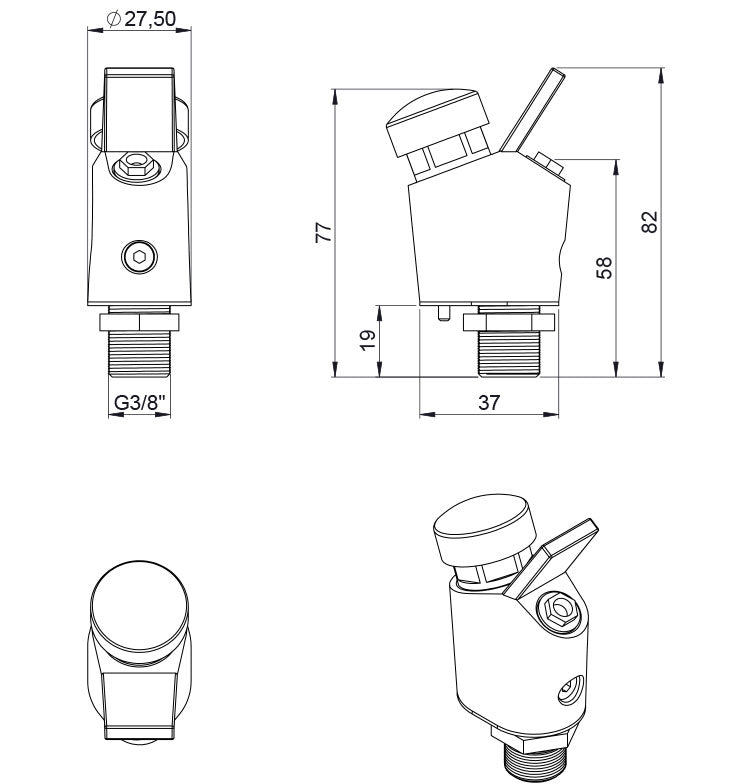 Trinksprudler für Trinkbrunnen: Schnellschließend. Durchflussmenge einstellbar. Messing verchromt. Anschluss G 3/8B.