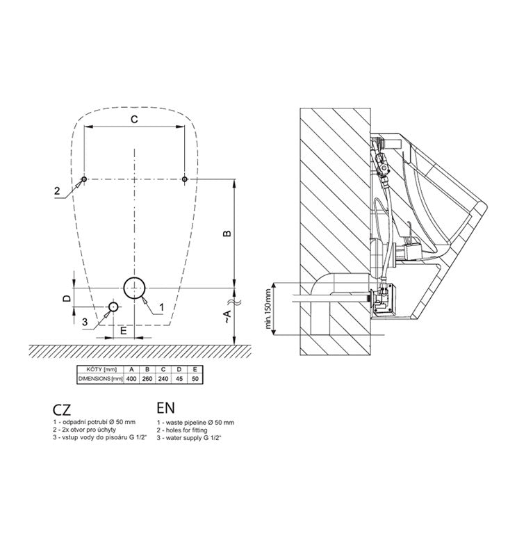 Einfache Montage, komplette Einheit hinter dem Urinal