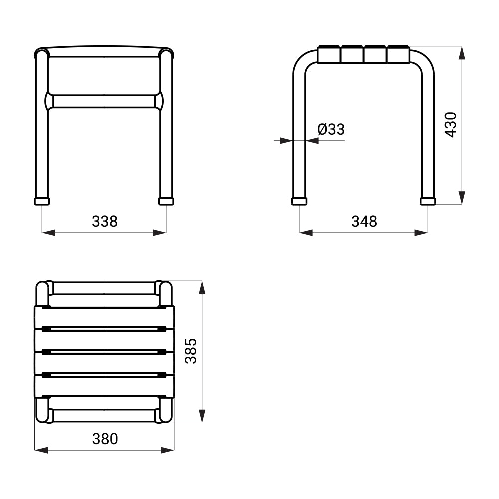Hocker mit Sitzfläche aus antibakteriellen Nylon-Lamellen