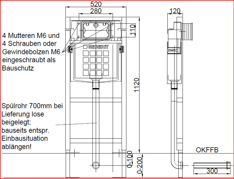 Nr. :970913 für 1-Mengen, 2-Mengen oder Spül-Stopp-Spülung, Fußstützen verzinkt , verstellbar 0 -22 cm, Kunststofffüße drehbar, Tiefe