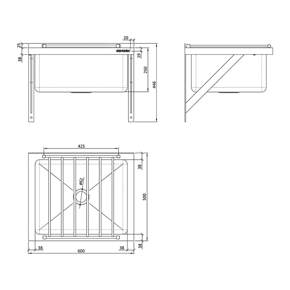 Wandmontiertes Waschbecken aus hochwertigem Edelstahl AISI 304