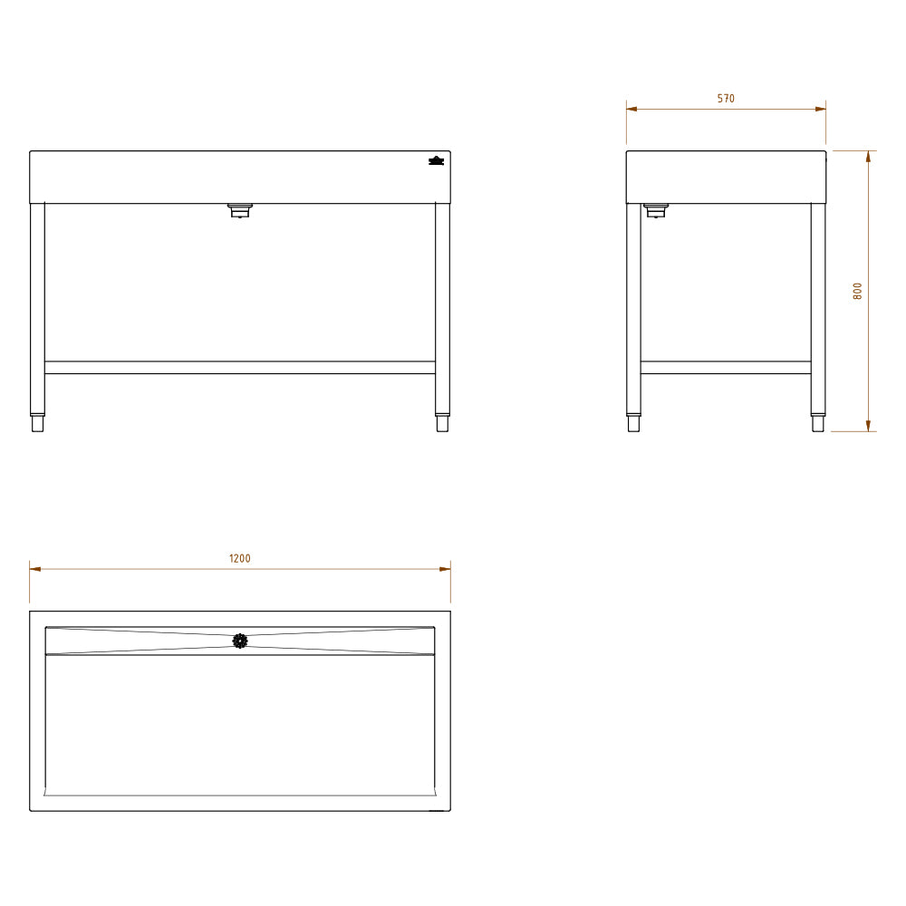 as well as a bracing system running around the bottom edge of the basin and a lower 3-sided bracing system made of 35/35/1.5mm square tubing,