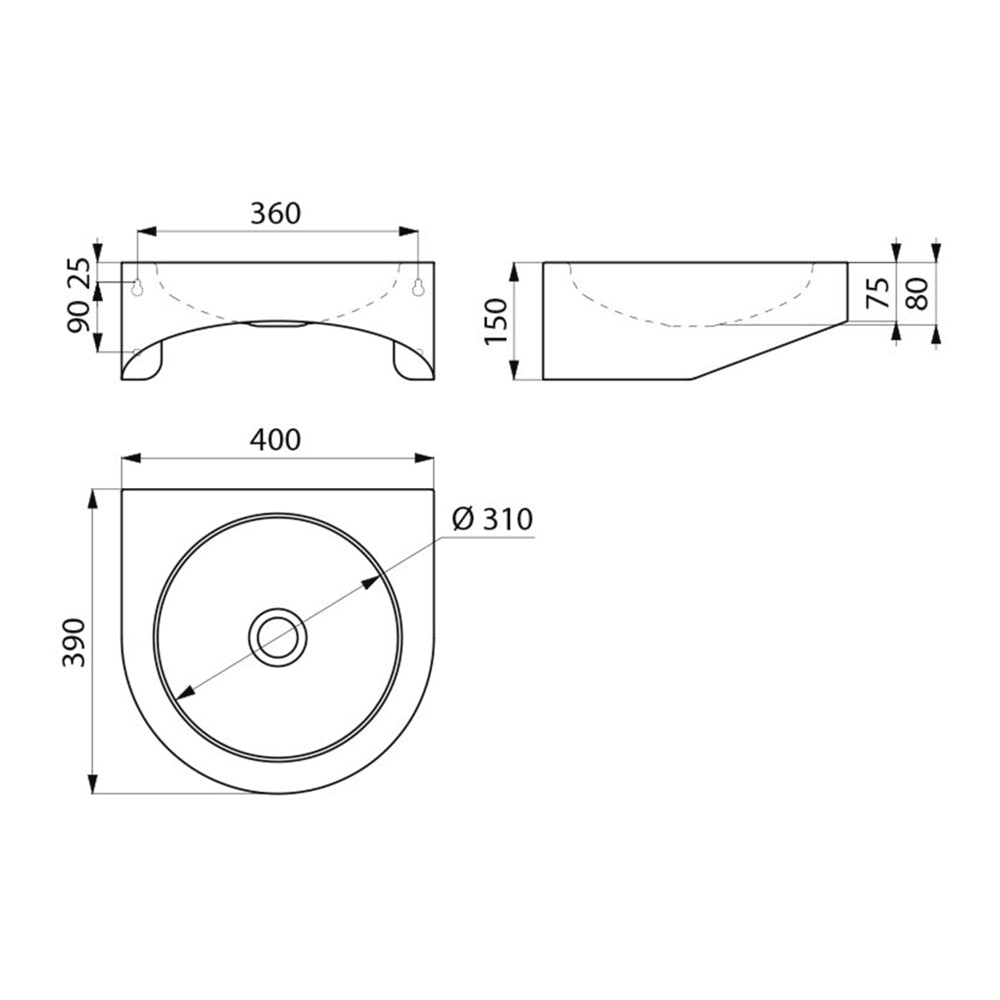 Becken-Innendurchmesser: 310 mm.