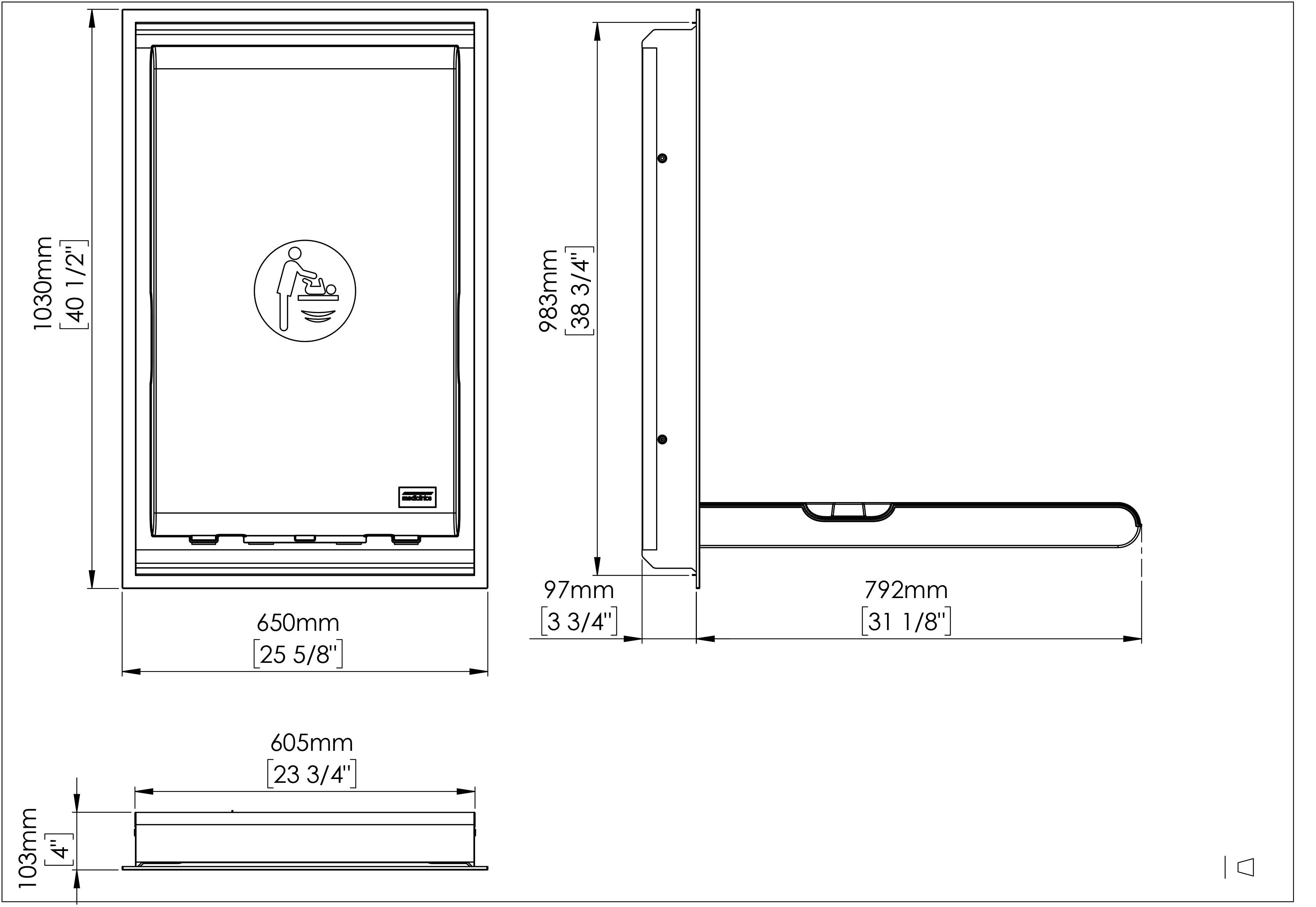 Wall recess: 609 x 987 x 99 mm