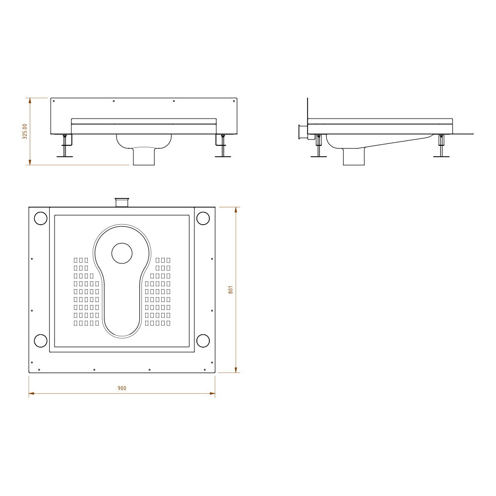 Toilettes à la turque avec rebord et bride adhésive
