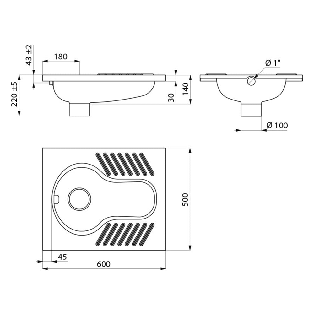 WC turc SHA XS 1 effet d'eau sans siphon Inox 304 satiné
