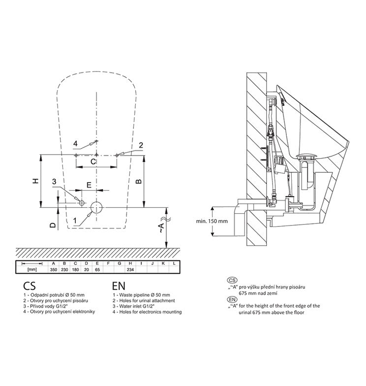 Keramik-Urinal mit Radar-Spülung (Plug & Play)