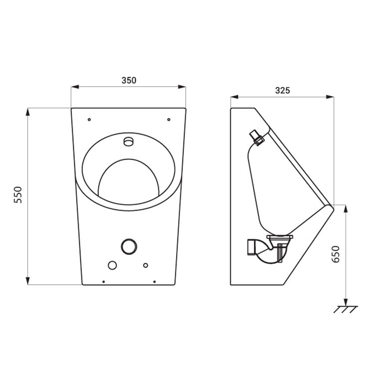 Contenu de la livraison : Urinoir avec tête de chasse d’eau intégrée, électronique, électrovanne (1 pièce), robinet d’arrêt avec filtre,