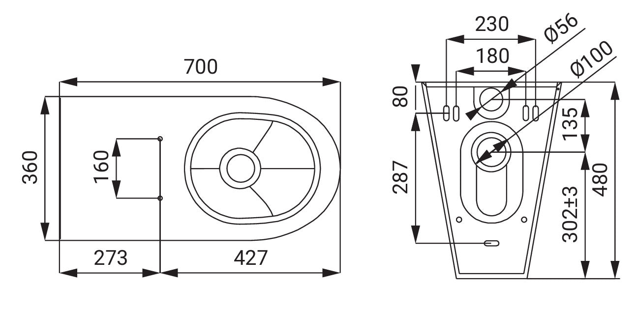 Évacuation optionnelle dans le mur ou le sol