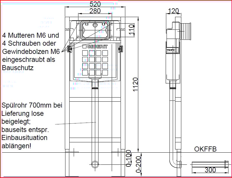 Leerrohr für Wasserzuleitung zum Anschluss von Geberit