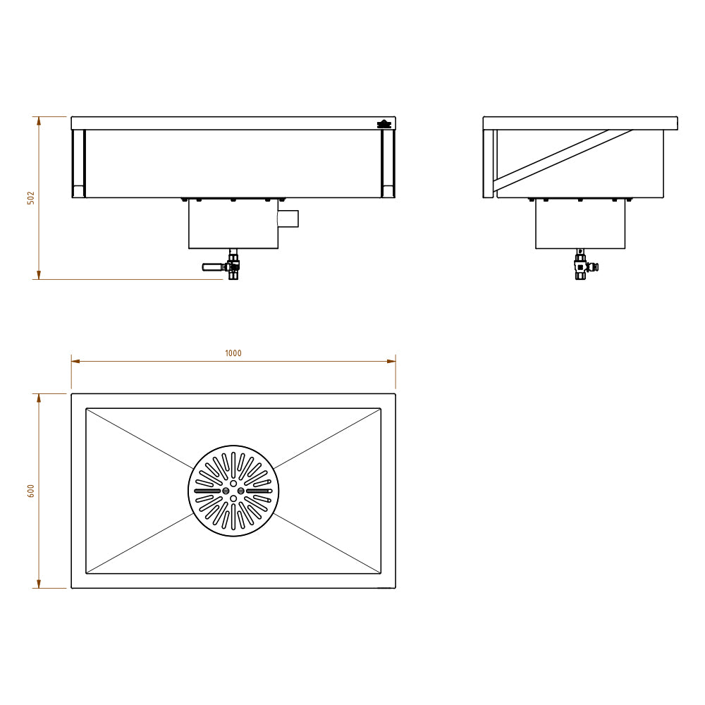 Abm.: 1000 x 250 x 600 mm Becken außen (BxHxT)