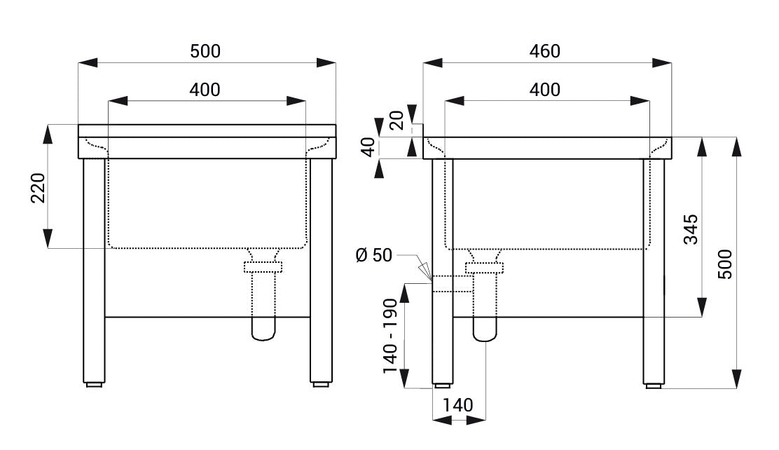 Bodenstehendes Edelstahl Ausgussbecken, zur Installation auf Freiflächen