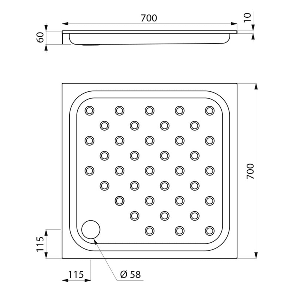 Brausetasse für Fußbodeneinbau, 700 x 700 mm