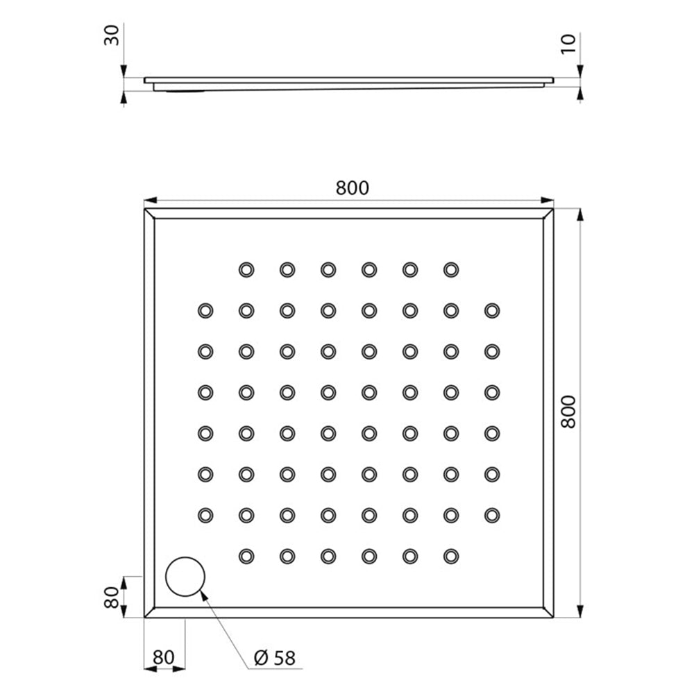 Brausetasse für Fußbodeneinbau, 800 x 800 mm.