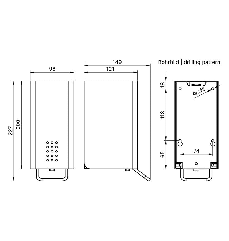 Inkl. Schlüssel, Edelstahlschrauben und Dübel.