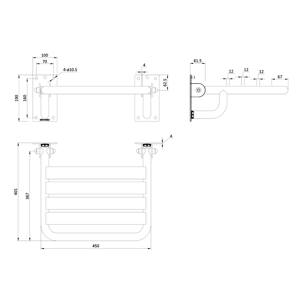 Der Sitz wird mit 8 Schrauben (70 mm) und 8 Nylondübel (10 x 50 mm) an der Wand befestigt.