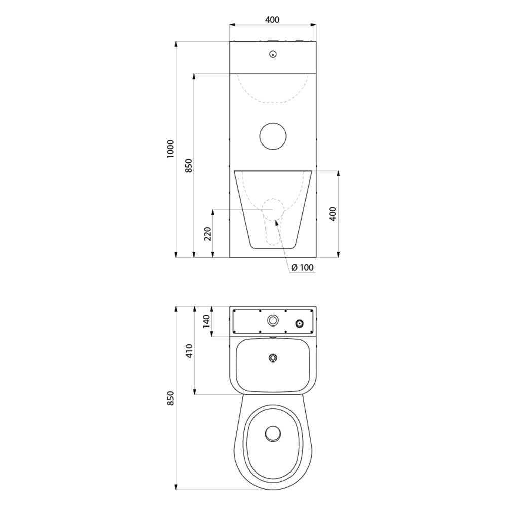 Einfache Montage: nur ein Ablauf für WC und Waschtisch, wasserseitige und abwasserseitige Anschlüsse bereits