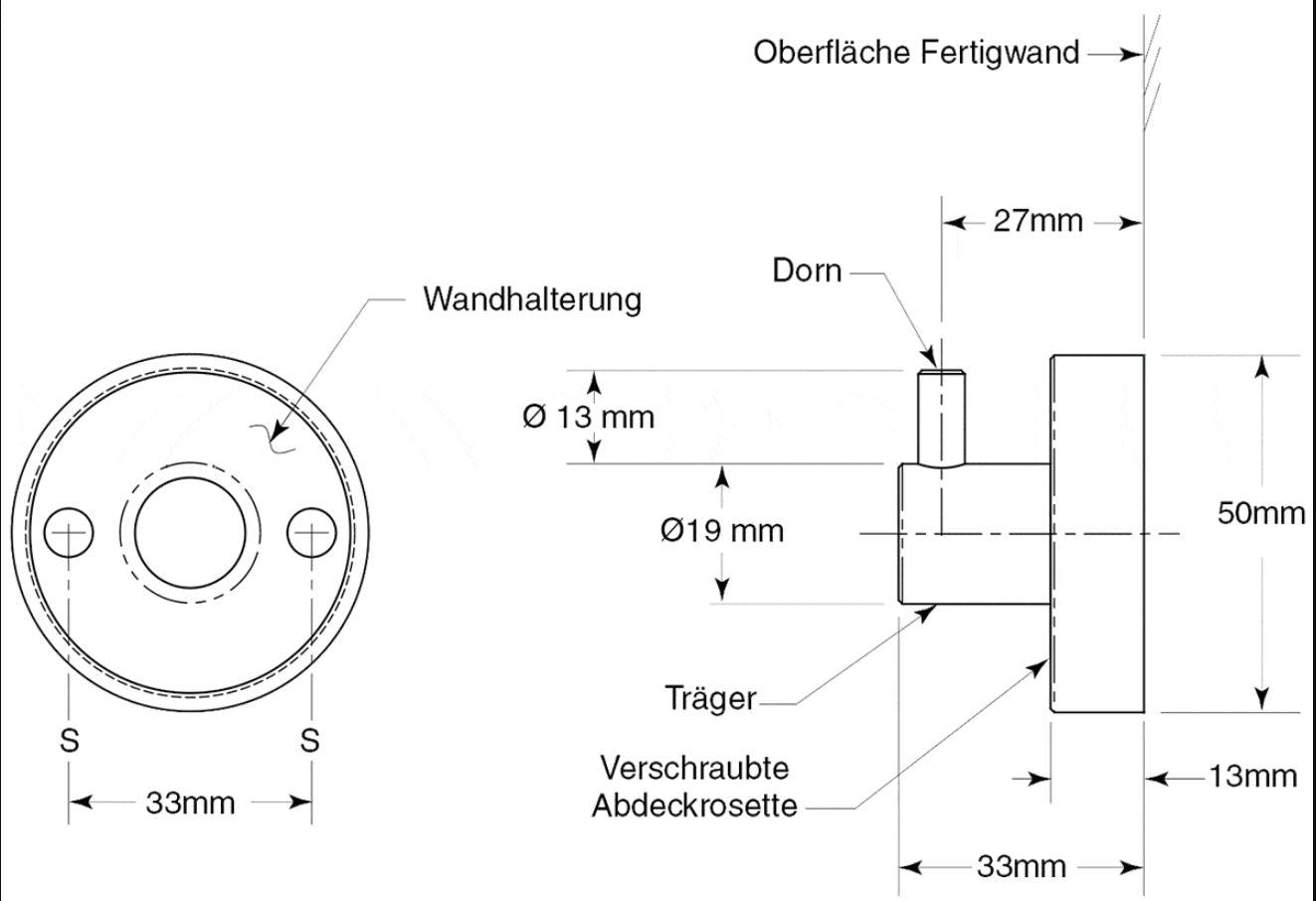 Montage: Gewinderosette verdeckt die Montageplatte, sorgt für festen Sitz