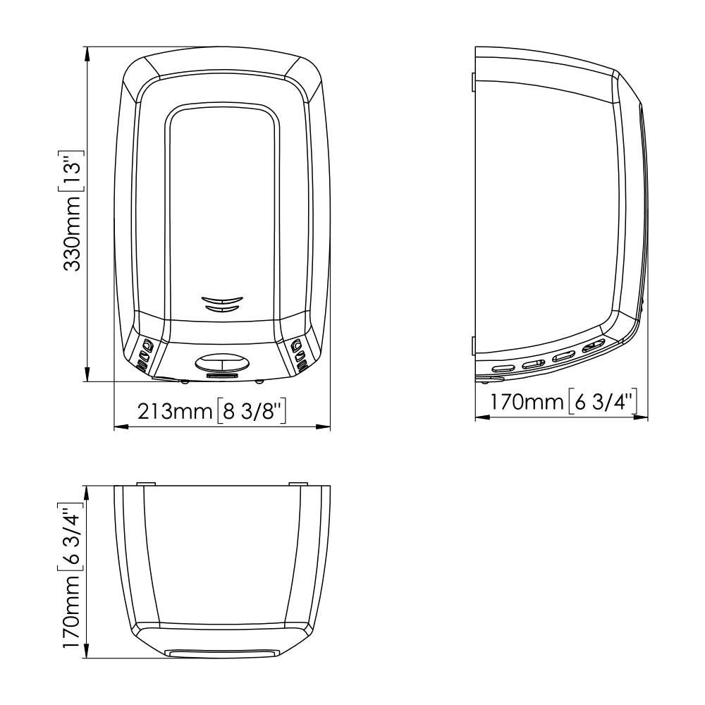 Sensorgesteuerter Händetrockner Machflow Plus, erhältlich in Stahl mit weißer oder schwarzer Oberfläche sowie in Edelstahl AISI 304