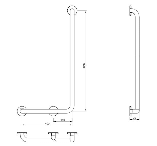 Handlauf L-Form Ø 32, für bewegungseingeschränkte Nutzer. Linke Ausführung.