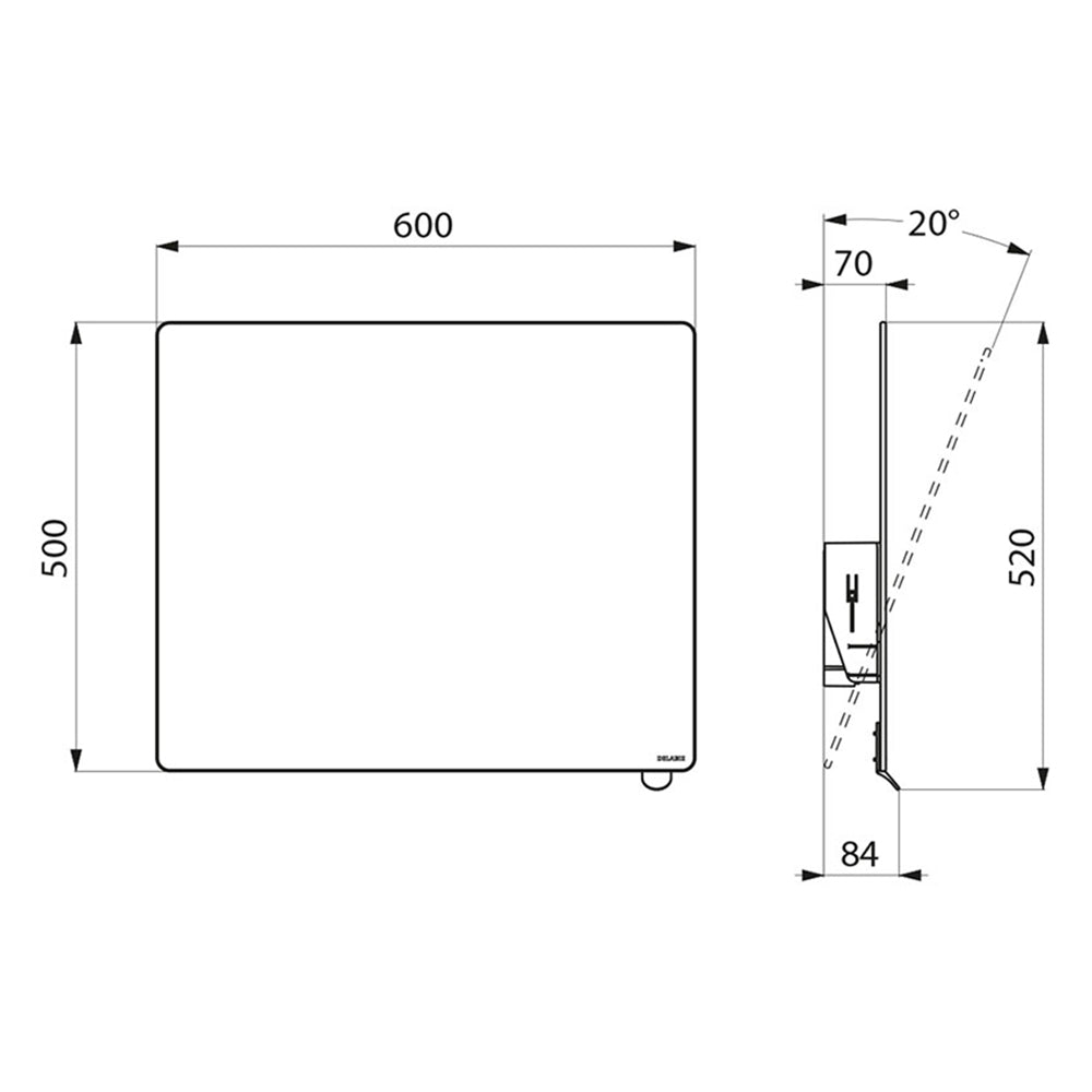 Spiegelmaße: 500 x 600 mm.