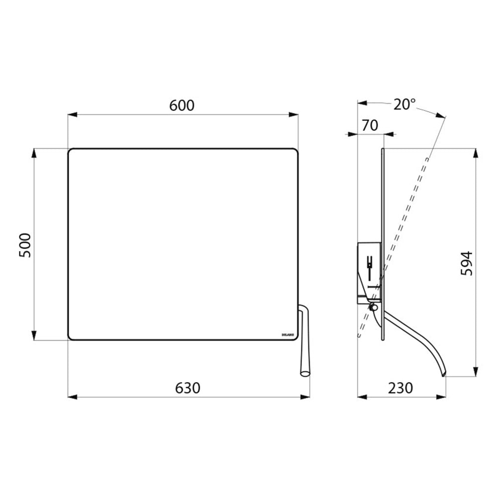 Rechteckiger Kippspiegel für Wandmontage aus Glas mit langem, ergonomischem Hebel, ermöglicht Kippen des