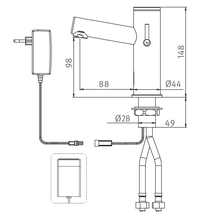 Metrix Primus Misch-Armatur, 9V Netzbetrieb, Edelstahl matt